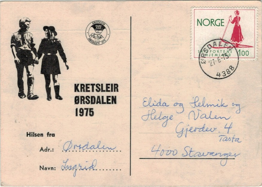 40. Stemplet Gran 195(?), sendt fra Nordtangen (KFUK). Noen som gjenkjenner jentene?