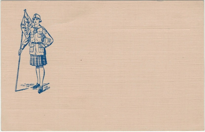 201. NSPF(?) ca. 1938 - hvem har tegnet speideren? Se også nr 102, kan være samme kunstner.