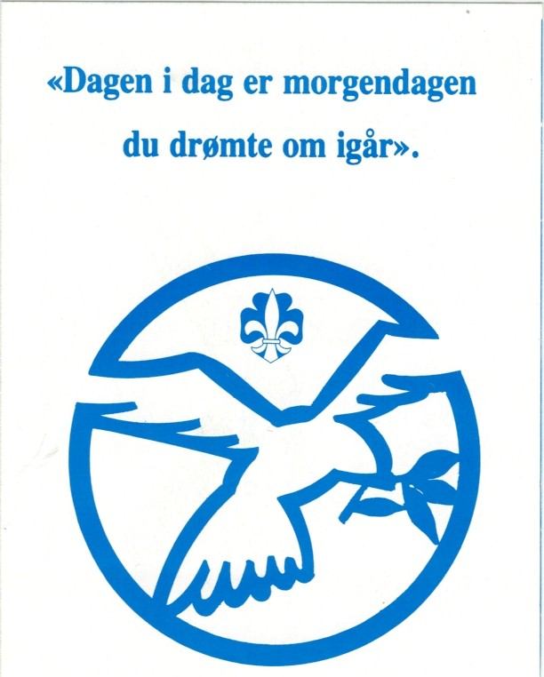 327. NSF eller KFUM? 1986. Er dette speidere? De har en slags merker på skjorteermene. Nutta Haraldsen opplyser at signaturen er av Geir Fløde.