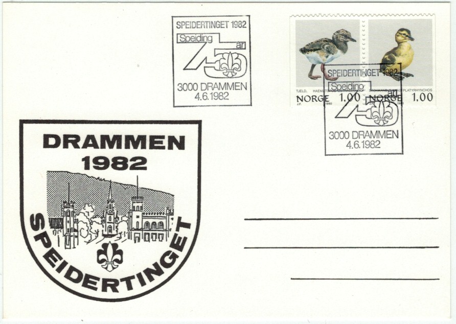 407. KFUM 1982. Kortet er laget av Steinar Halvorsen for Spiva-Fil (Norsk Speiderfilatelistisk Gruppe). Hvem har tegnet logoen (Skibladner)?