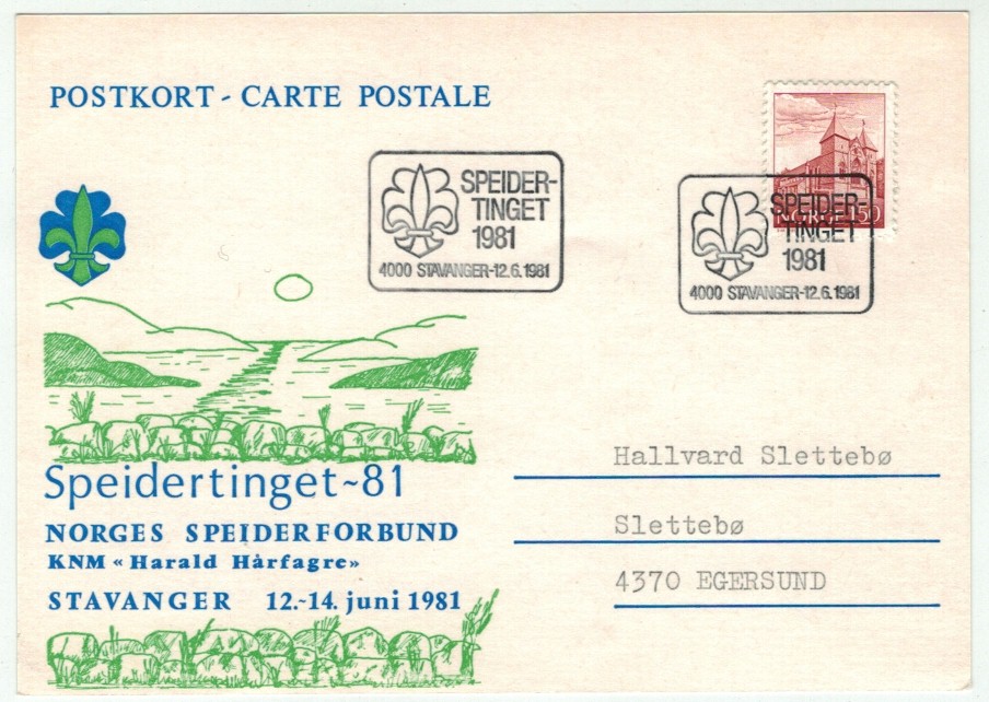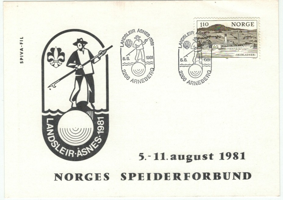 331. NSF 1981. Kortet er laget av Steinar Halvorsen for Spiva-Fil (Norsk Speiderfilatelistisk Gruppe). Leirlogoen er lånt fra landsleiren/forbundet, hvem har laget den?