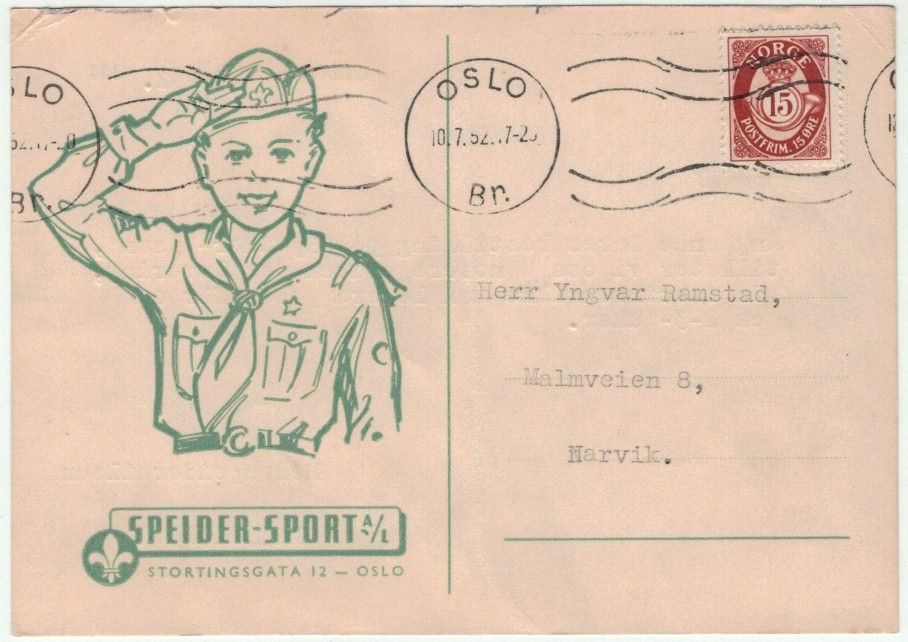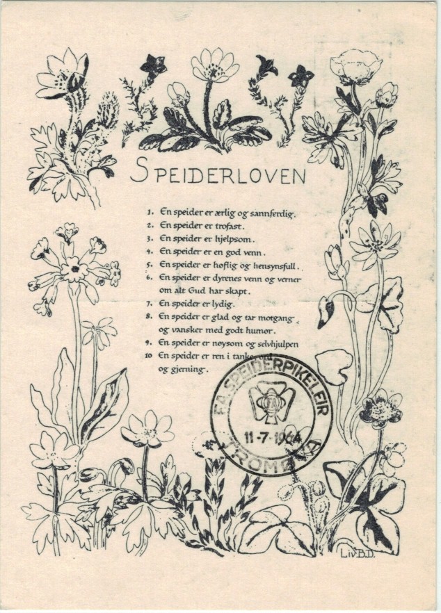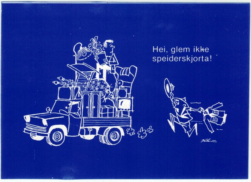 119. NSF 1965, Karmøy-speidere. QSL-kort (ikke postkort). Hvem er tegneren?