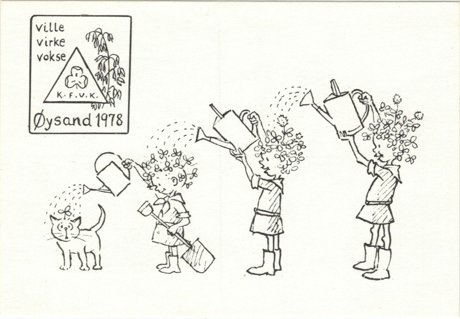 518 a-d. KFUK tidlig 1970-tallet? Usignert, KFUK-korpskontoret opplyste at de er tegnet av Trygve Mikalelsen, kan noen bekrefte det?