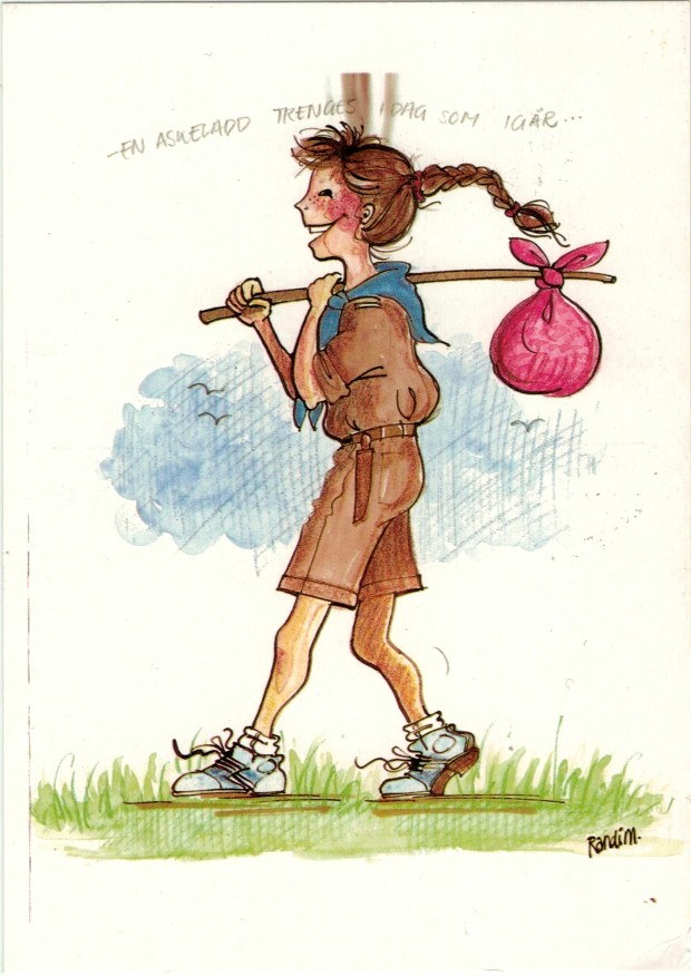 107. NSF 1953, Aaalesund Speidergutt-avdeling / Sunnmøre krets. Tegningen stod i Speideren nr. 5 1934 og i mange senere blad. Tegnet av Thor Wiborg?