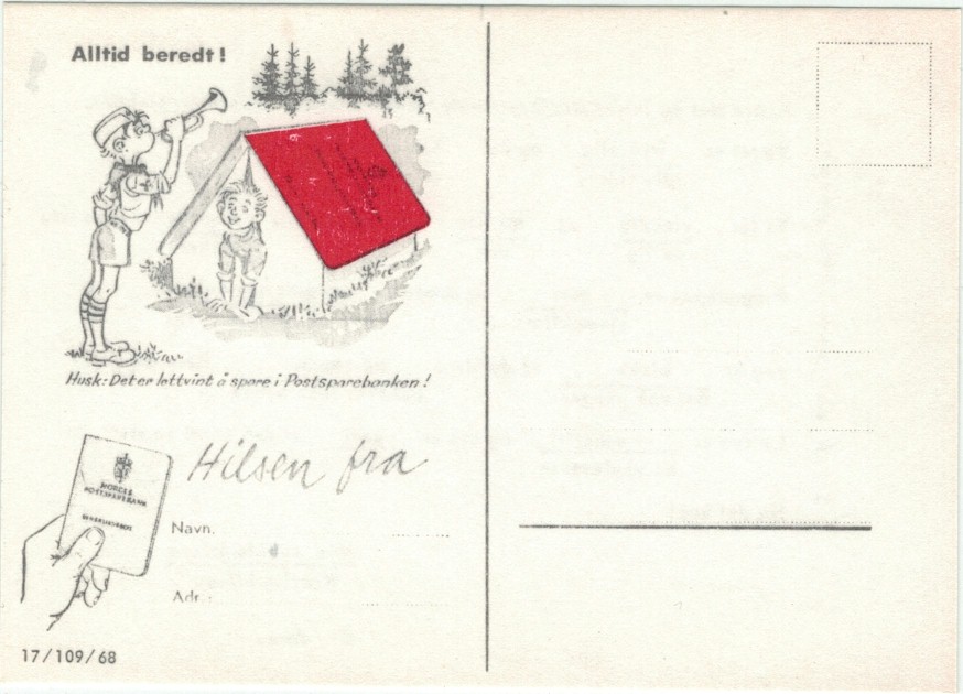 114. NSF ca. 1965(?). Sett på enkle og doble korrespondansekort, og på brevark (omntrent som gammeldagse festtelegram)? Hvem har tegnet?