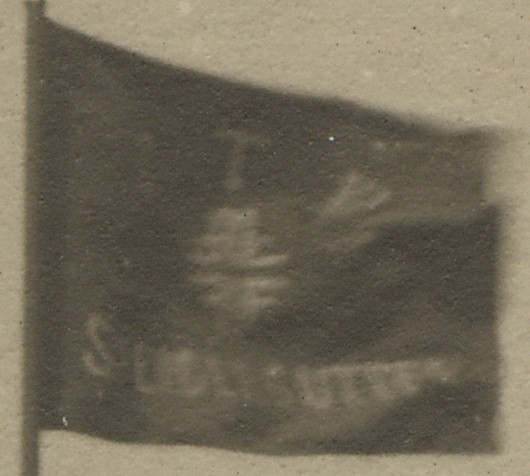 Cato Bramwell de Savigny opplyser at det er to FA flagg i kors i bakgrunnen.