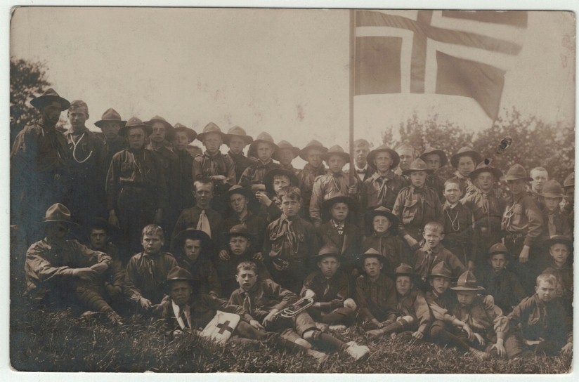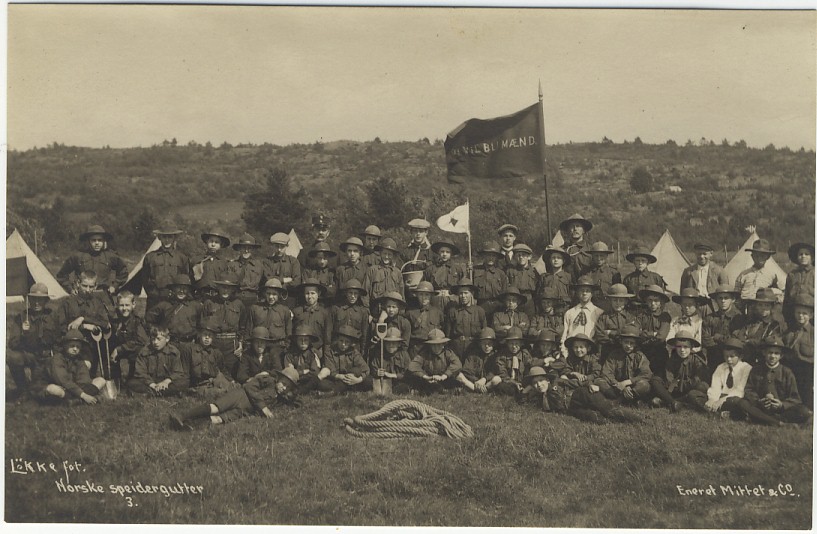 56. Hvem, hvor og når? Speiderne har hatter, så det er senest 1922 (da kom båtluene).