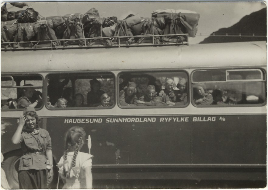 33. Antakelig speiderjenter fra Haugesund eller Sunnhordland på vei til leir?