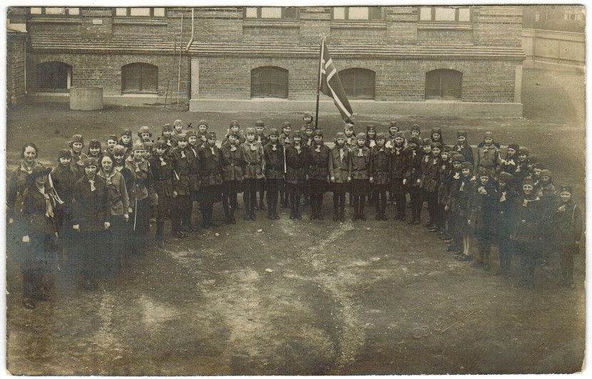 15. Kan dette være fra korpsleiren til Frelsesarmeens Livredningsspeiderjenter i 1930 på Strindheim skole i Trondheim?