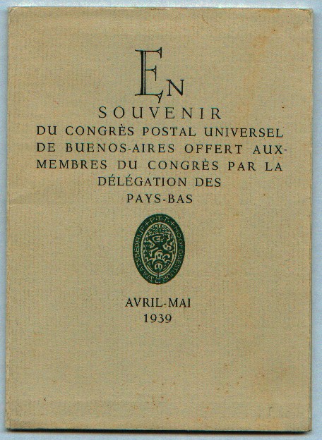 The 11th congress of the World Postal Union (Union Postale Universelle - U.P.U.) was held in Buenos Aires, Argentina 1 April to 23 May 1939. There were 141 delegates, 33 experts and 174 participants from 81 member countries, and 1,108 motions were discussed at the congress.