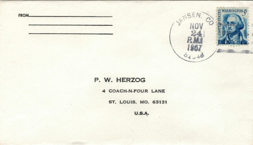 Jansen, Las Animas Co., CO, 1902-1974, temp. closed April-July 1911. Pm Joseph W. Decker. Jansen was a station on the Atchison, Topeka and Santa Fe Railway and was perhaps named for a railway person. Alternatively, named for Cornelius Jansen, Mennonite leader from Prussia?
