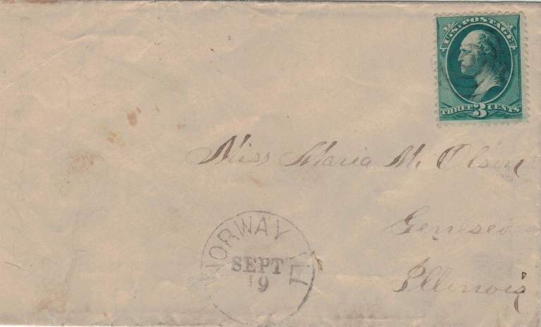 Norway is a community in LaSalle Co., Illinois, founded by Cleng Peerson in 1834 in the area known as the Fox River Settlement, and named for his home country. The village was the early centre of Norwegian immigration. The Mount Knickerbocker post office was established 1843 and changed name to Norway 1846. It closed 1906, superseded by R.D. from Sheridan. NFT 1/2019.