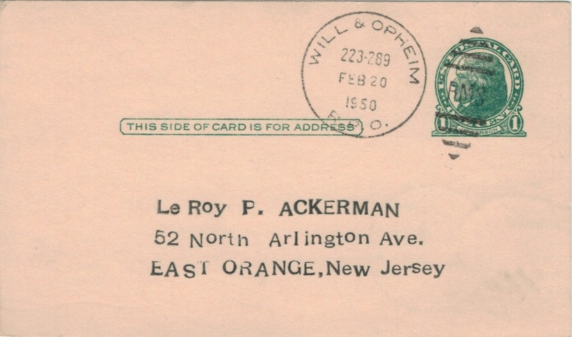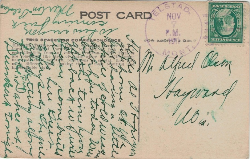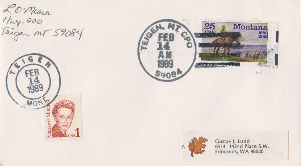 Railway post office for the 190 miles line between Williston, ND and Opheim, MT. In operation 1929-1933, 1948-1949; a postmark was used at least to 1950. See Opheim, MT for the origin of the Opheim name. NFT 5/2017.