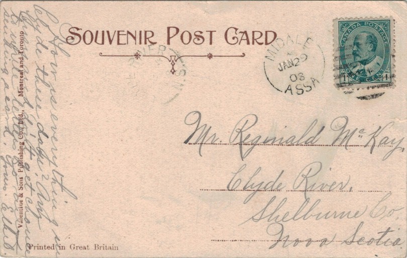 Midale, post office in Moose Mountain, SK. Established 1903 with Ole Wedin as postmaster. Named for first settler Ole Dale and pioneer doctor R.M. Mitchell. Still in operation.