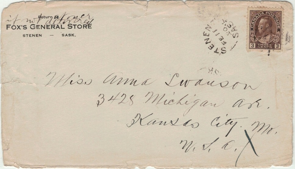 Fosston, post office in Mackenzie, SK. Established 1911 with Oscar Rustad (born c.1887 in the U.S. to Norwegian immigrant parents) as postmaster. Named for Fosston MN. Closed (unknown year 1977-2020).