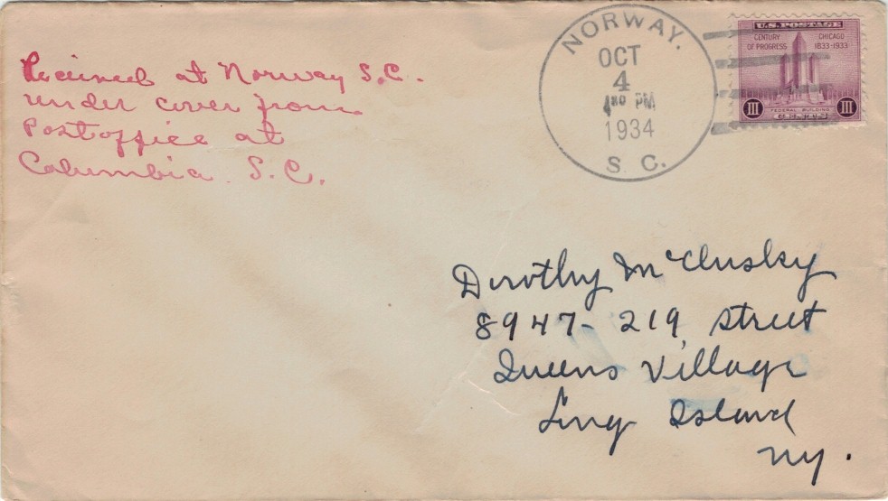Norway, post office in Orangeburg Co., SC. Established as Stella, and changed name 1892 to Norway with Zachariah H. Kinard taking over as postmaster. The name change was probably initiated by the railway company, and nearby places are Denmark, Finland and Sweden. It is still in operation. Svein Andreassen writes about Norway, SC.