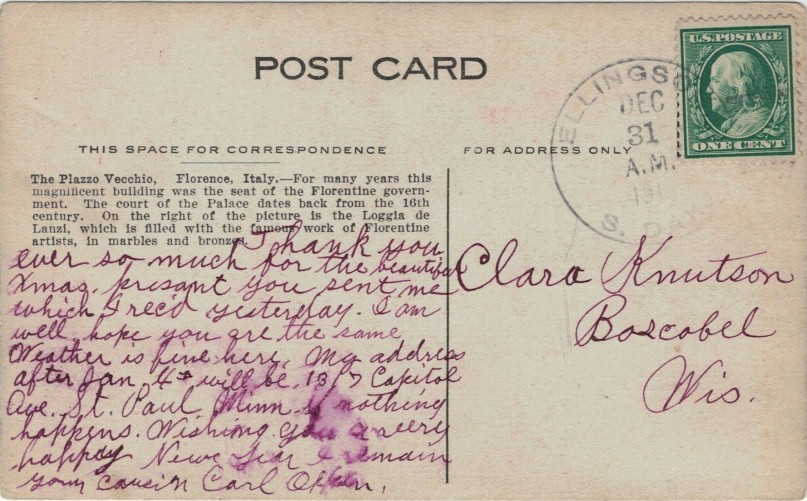 An earlier note/information says that the post office was named for its pm Christ Nelson – this does not match information in Postal Bulletin.