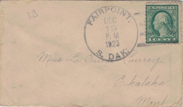 Fairpoint, post office in Meade Co., SD, was given the name by Osmund T. Sevareid, an early settler and a land commissioner, because it was a name found only once in the U.S. post office directory. Established 1909 with Osmund T. Sevareid as postmaster (born 1864 in Minnesota to Norwegian immigrant parents). Rural branch of Sturgis 1966 and discontinued 1978.