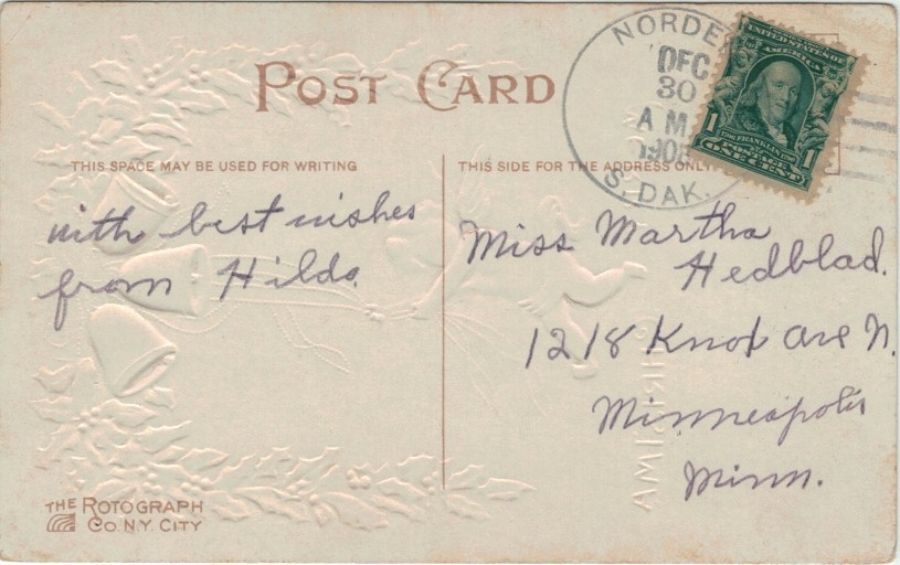 Norden is a village and township in Deuel Co., SD. Named by Scandinavian settlers and drew its name from Lake Norden in the neighbouring Hamlin Co. The Norden, SD post office was established 1878 with Andrew J. Torgerson a postmaster. It was discontinued 1904, superseded by R.D. from Brandt.