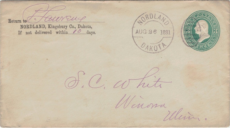 Nordland, post office in Kingsbury Co., SD. Established 1880 with Philip Lawrence as postmaster. It was called Nordland because most of the early residents were from Scandinavia. Changed name to Denver 1884, to Arlington 1885 and it is still in operation.