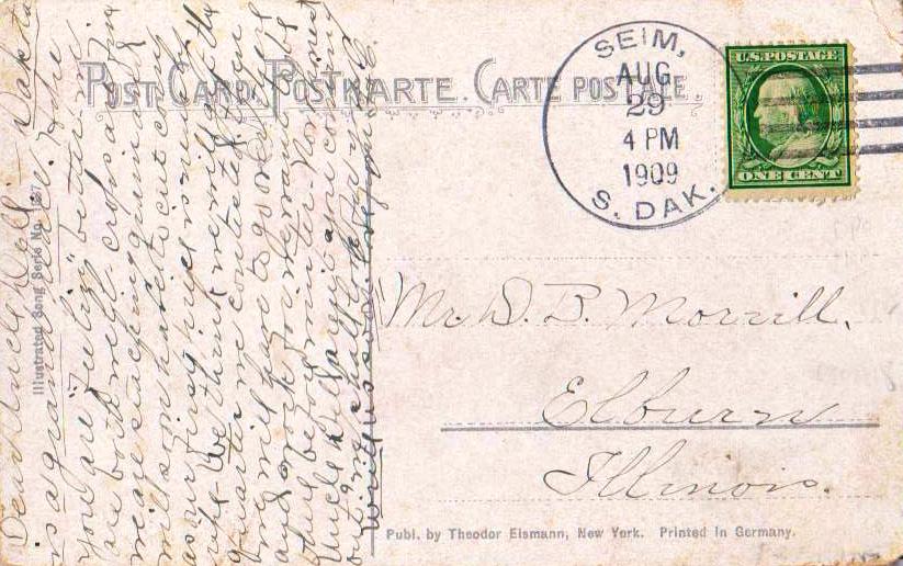Seim was a small community in Perkins Co., SD. It was named for pioneer settler Hans Hansen Seim (1845-1896), born in Granvin, Norway. The Seim, SD post office opened 1896 in Wagner Co. with Christ Skretteberg as postmaster, to Butte Co. 1901, to Perkins Co. 1909. It closed 1918 with mail to Lemmon. NFT 8/2016.