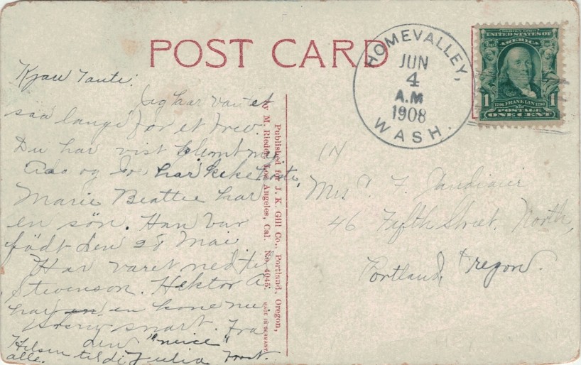 Home Valley is a community in Skamania Co., WA. The name is a translation of the deity Heimdal from old Norse mythology. The name Heim Dal was applied for, but Homevalley (spelling in one word) was approved when the post office opened 1892 with John Kanikkeberg postmaster (born 1851 at Kannikeberg, Øystese, Hardanger, Norway). It closed 1919 with mail to Carson. In 1922 it was re-established as Home Valley, WA (two words), and closed finally 1959 with mail to Stevenson.