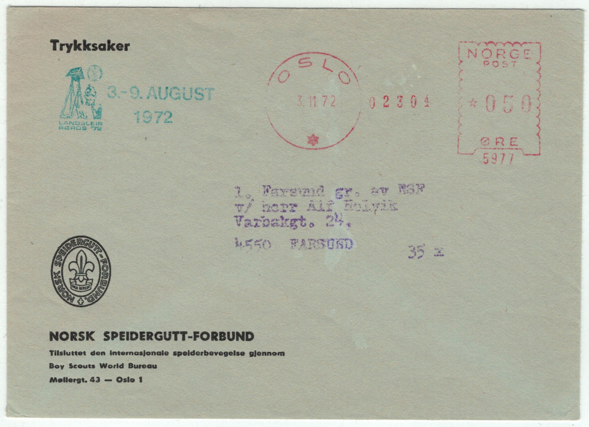 | N-X-OSL-001 | 1972 | 5977 | NSF | Landsleir Røros '72 3.-9. august 1972 | |