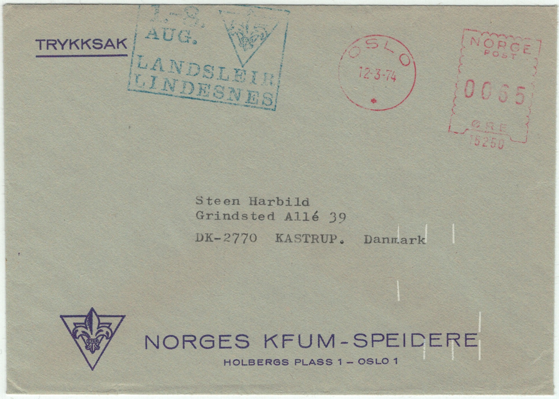 | N-X-OSL-003 | 1974 | 15250 | KFUM | 1.-8. aug. Landsleir Lindesnes | |