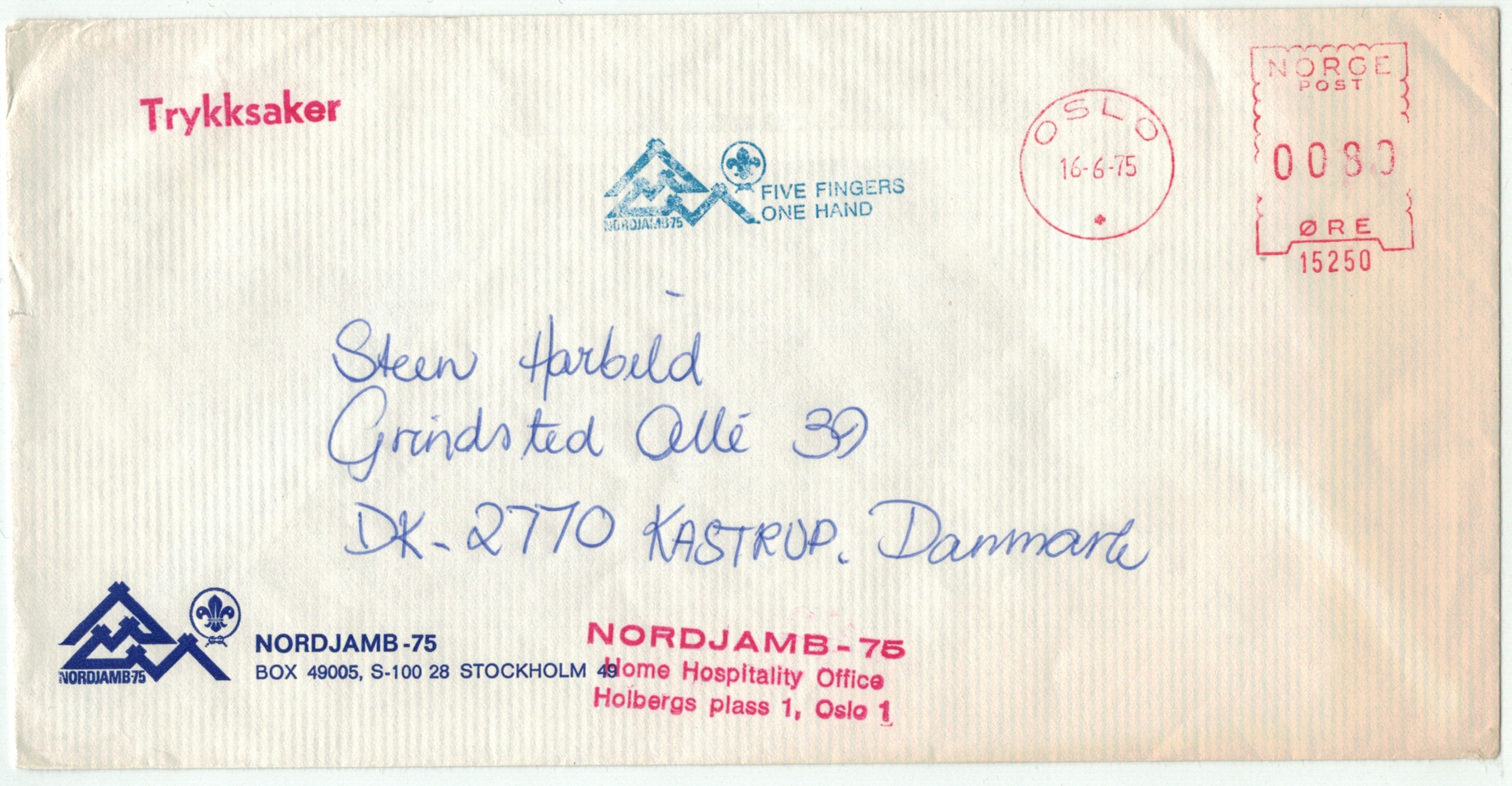 | N-X-OSL-005 | 1975 | 15250 | KFUM | NORDJAMB 75, Five fingers one hand | |