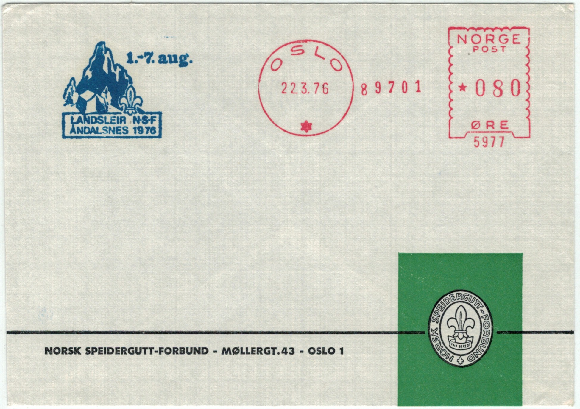 | N-X-OSL-006 | 1976 | 5977 | NSF | Landsleir Åndalsnes 1976 | |