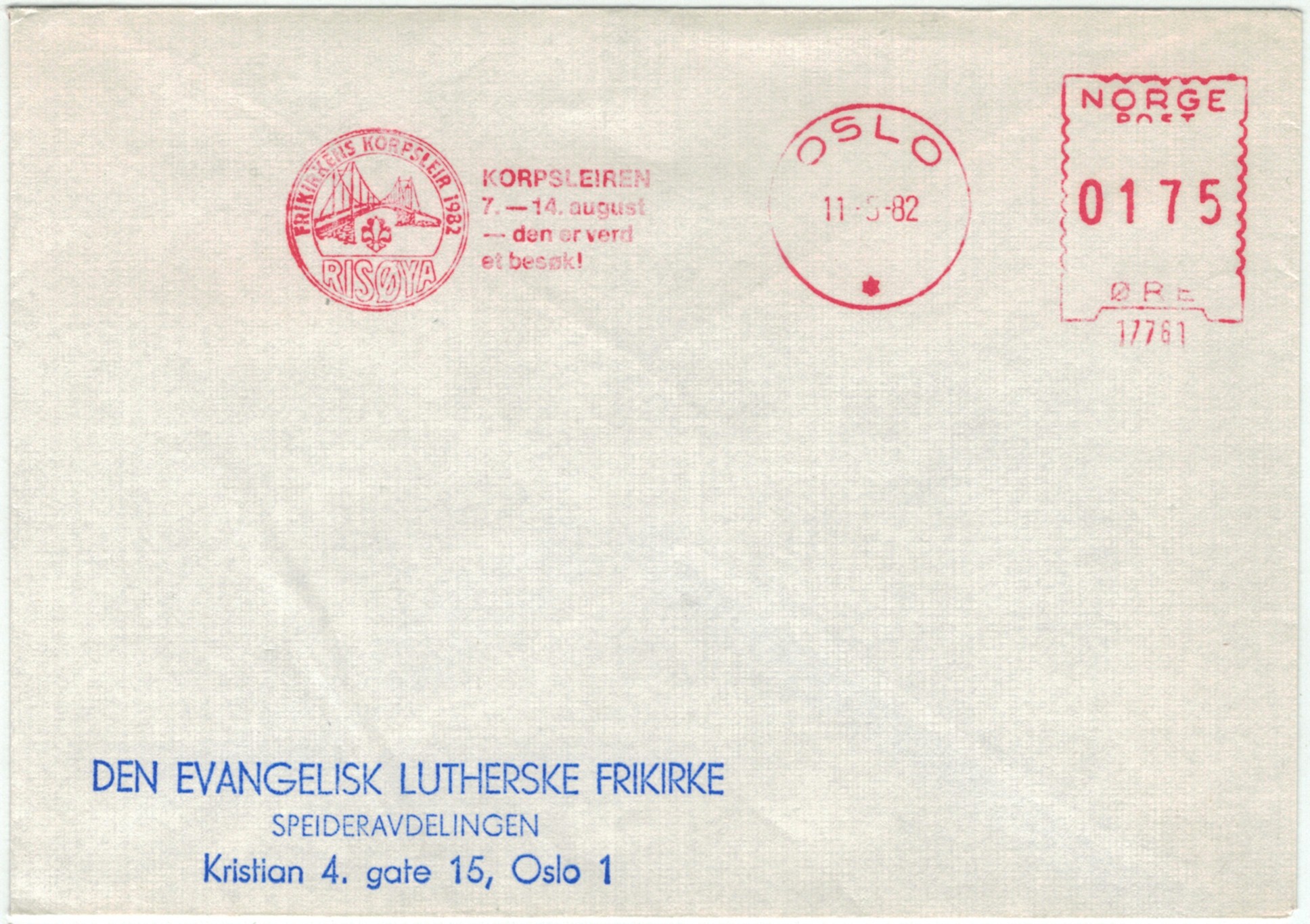 | N-X-OSL-015 | 1982 | 17761 | FS | Frikirkens Speiderkorps Risøya Korpsleiren 7.-14. august, Den er verdt et besøk! | |