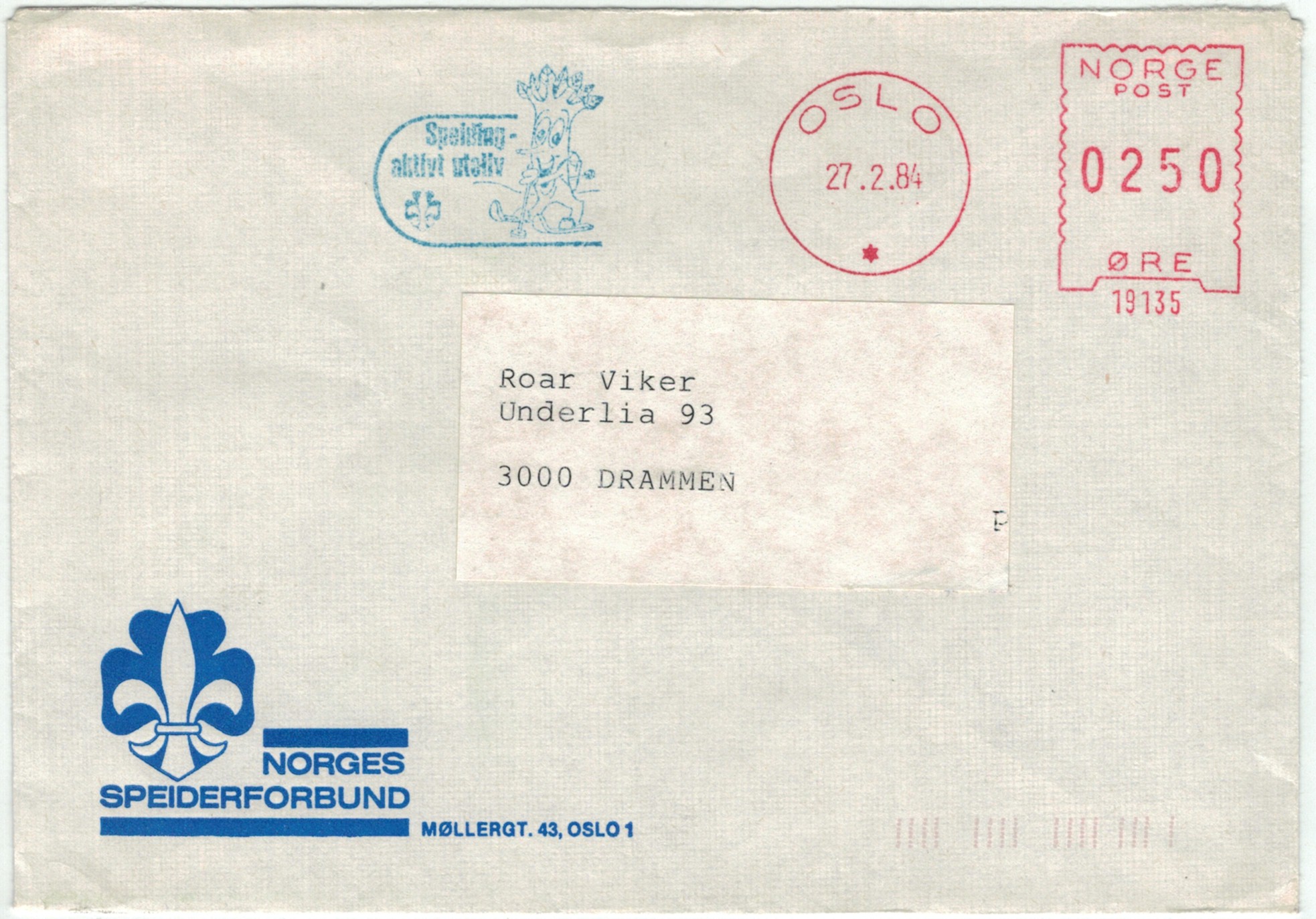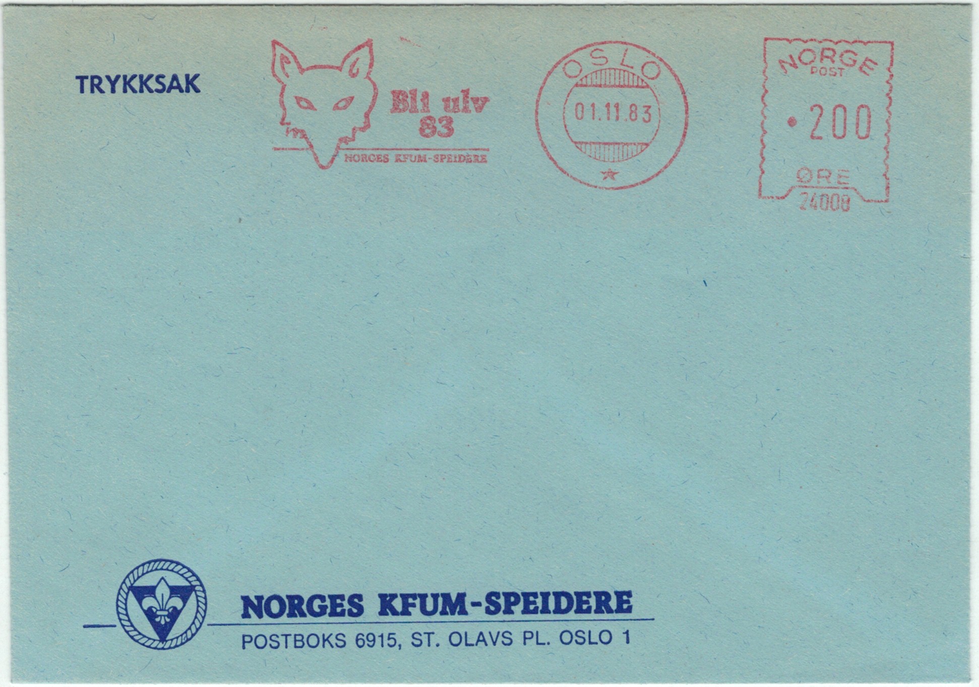 | N-X-OSL-016 | 1982 | 24008 | KFUM | Bli ulv 83, Norges KFUM-speidere | |