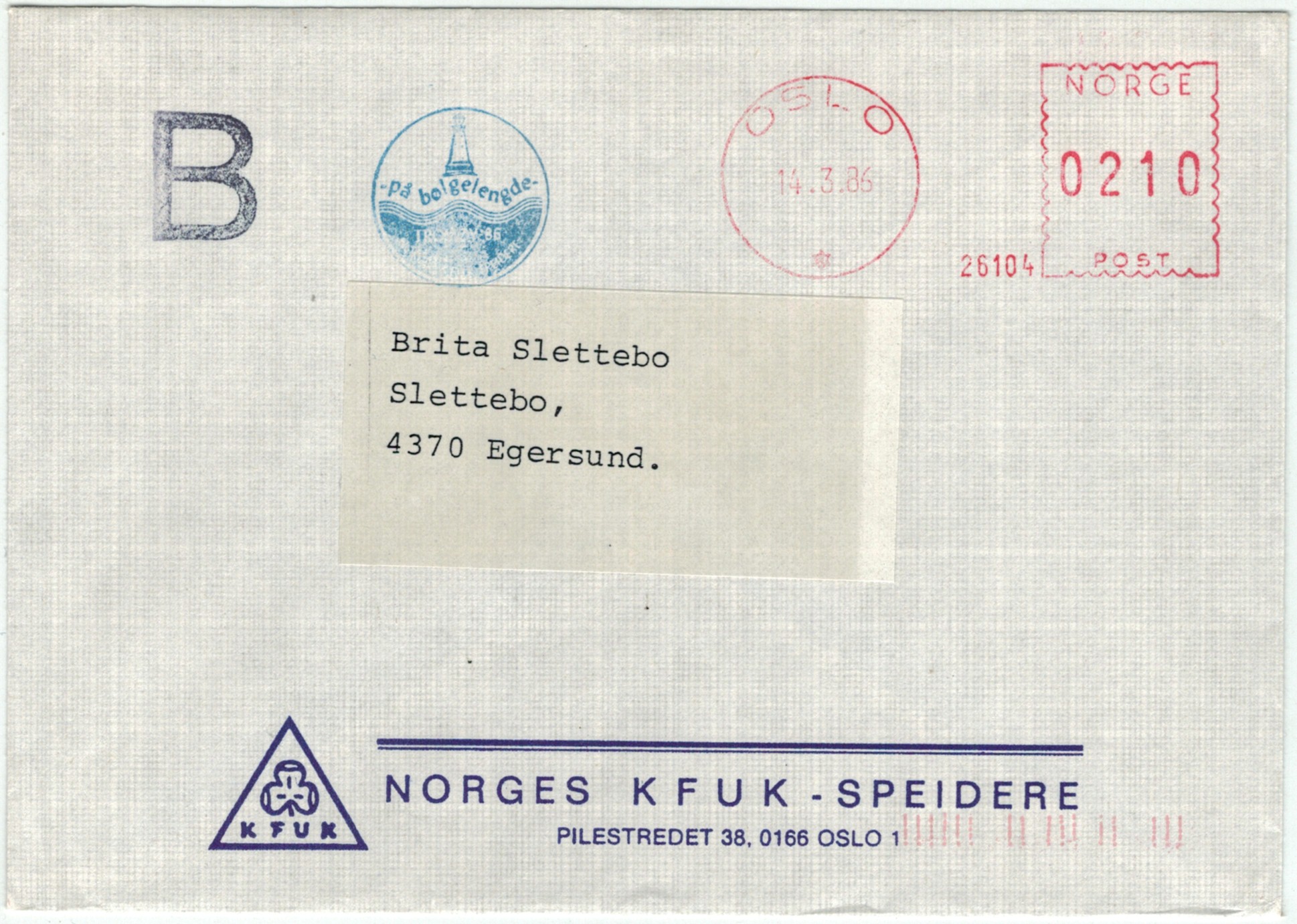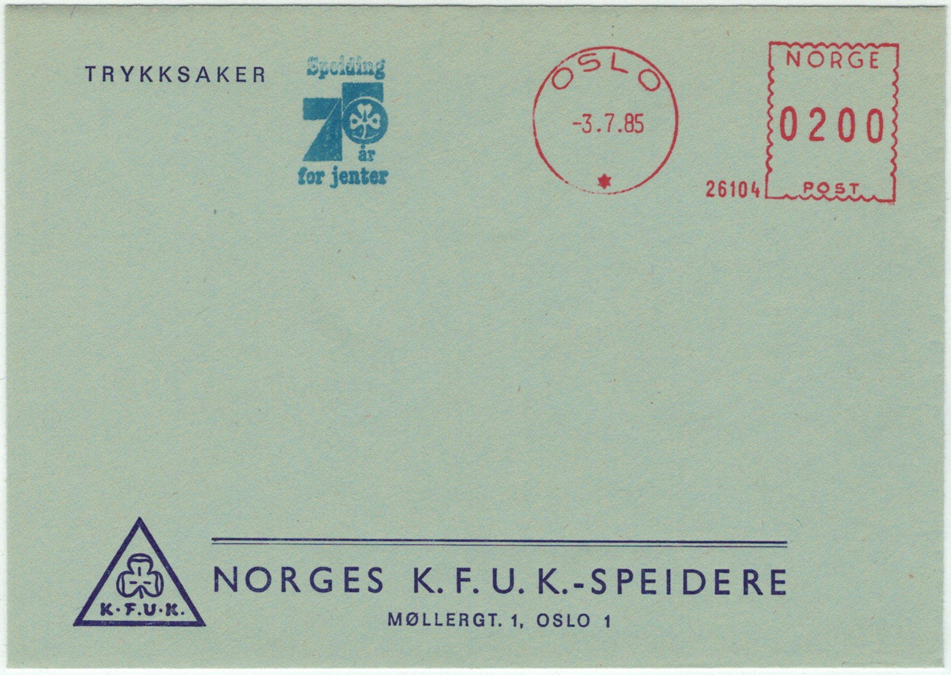 | N-X-OSL-021 | 1986 | 26104 | KFUK | Speiding 75 år for jenter | |