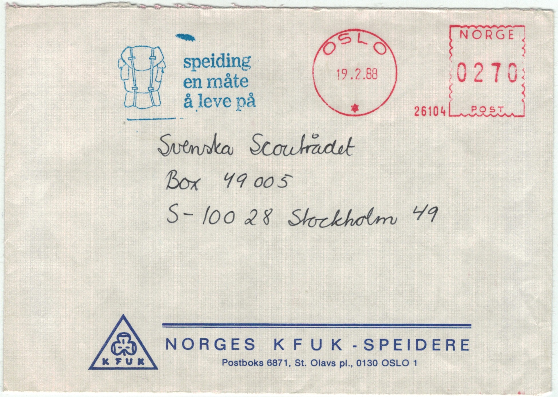 | N-X-OSL-007 | 1977-1980 | 15250 | KFUM | Norges KFUM speidere | |