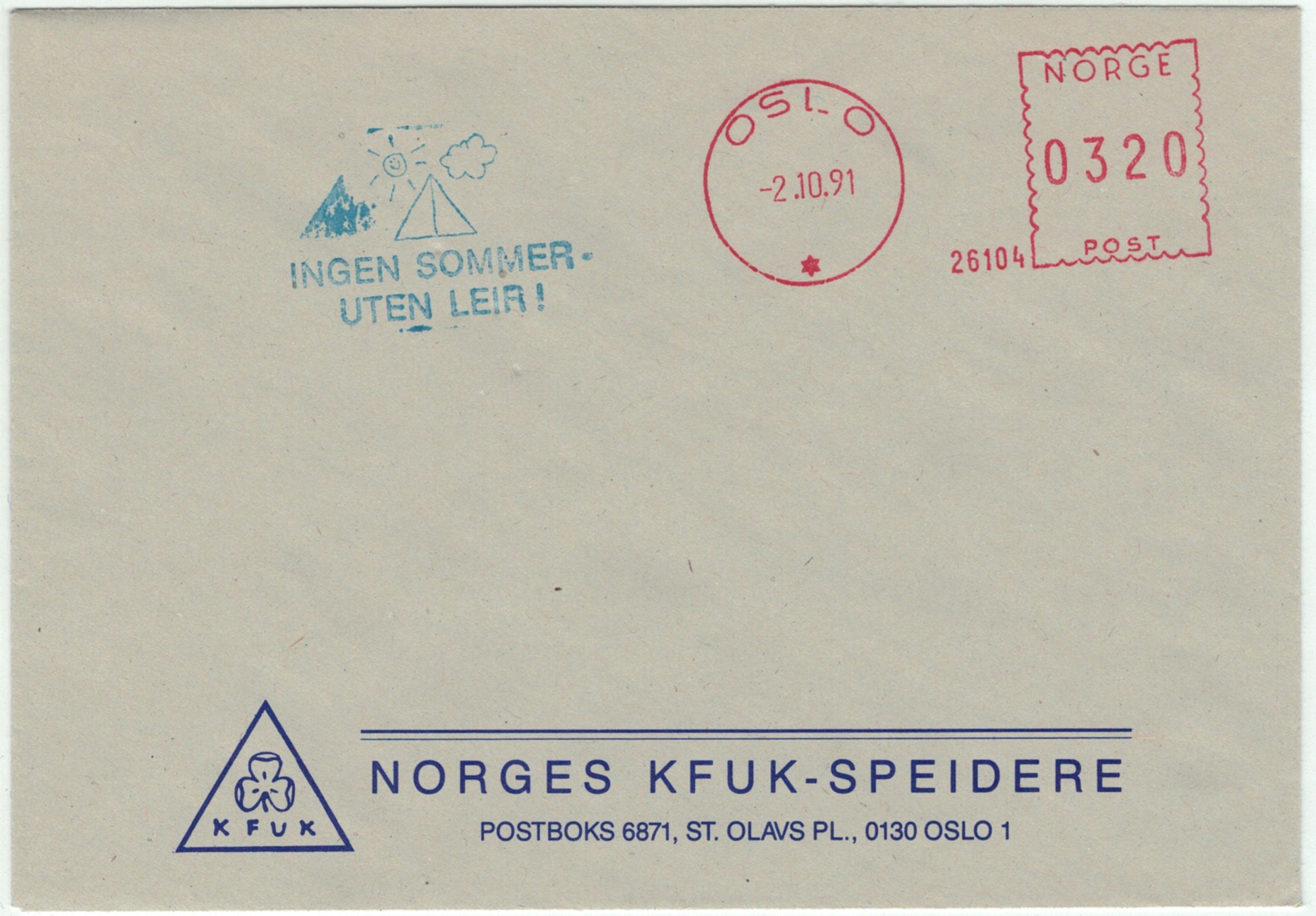 | N-X-OSL-029 | 1991 | 26104 | KFUK | Ingen sommer uten leir! | |