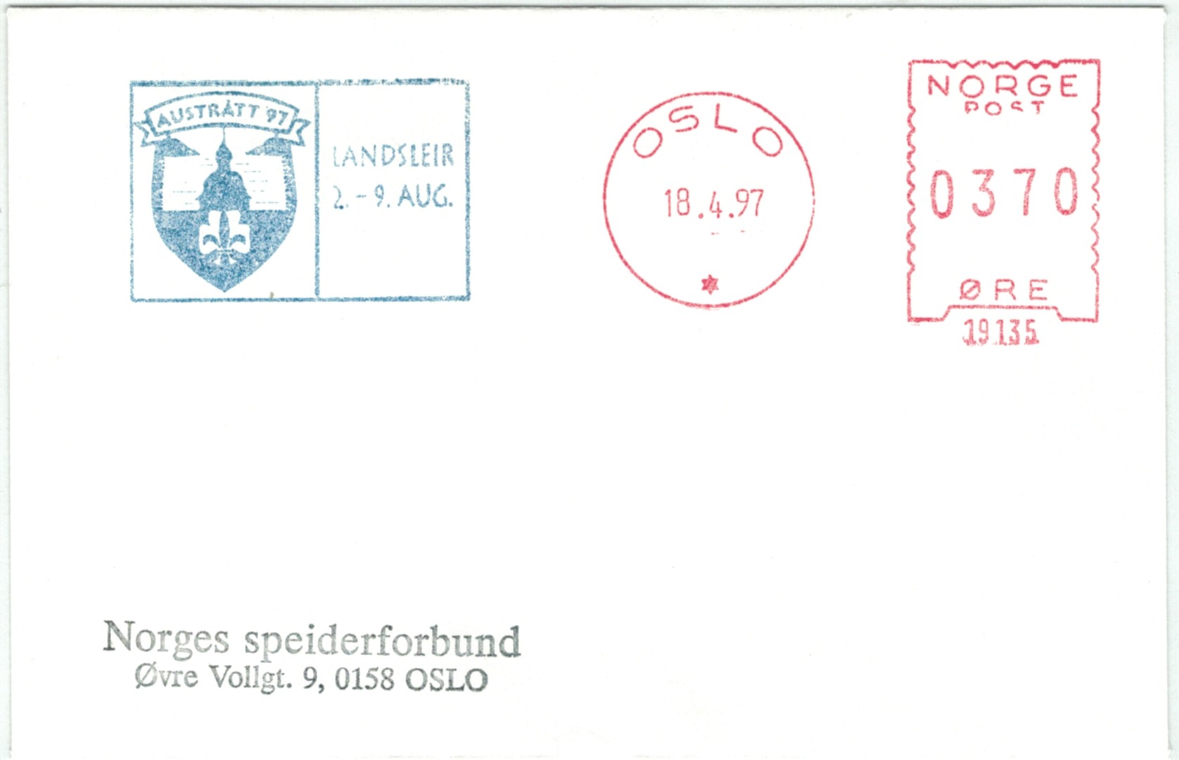 | N-X-OSL-036 | 1997 | 19135 | NSF | Austrått 97. Landsleir 2.-9. aug. | |