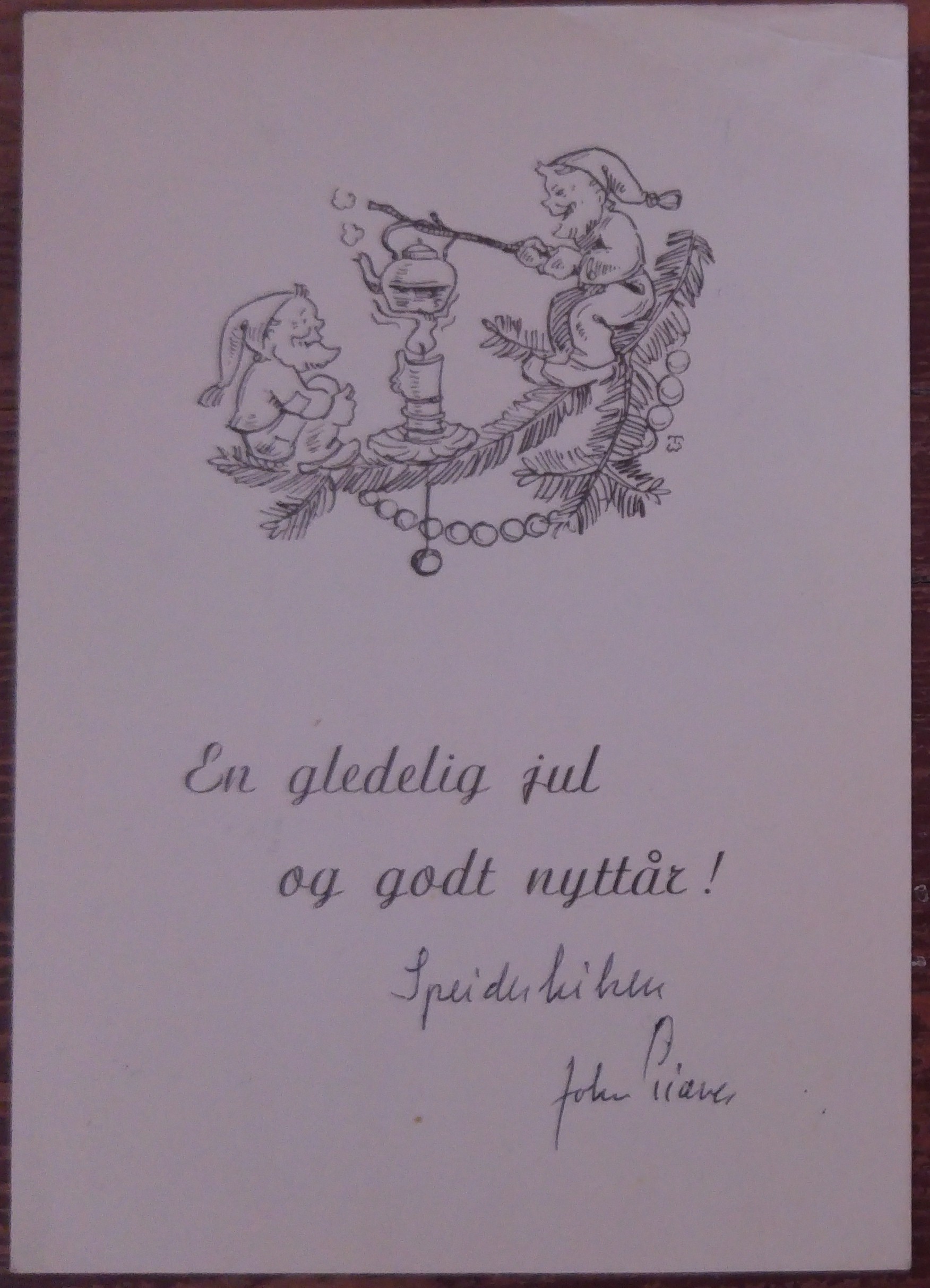 | N-G-000-1950 | Postal card | 1950 | Issued privately by John Giæver? Additional private printing on official postal card. | Christmas and New Year greeting. | |