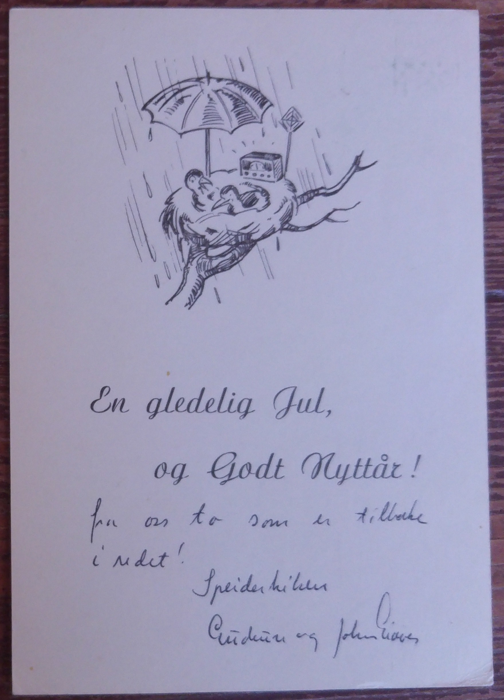 | N-G-000-1960 | Postal card | 1960 | Issued privately by John Giæver? Additional private printing on official postal card. | Christmas and New Year greeting. | |