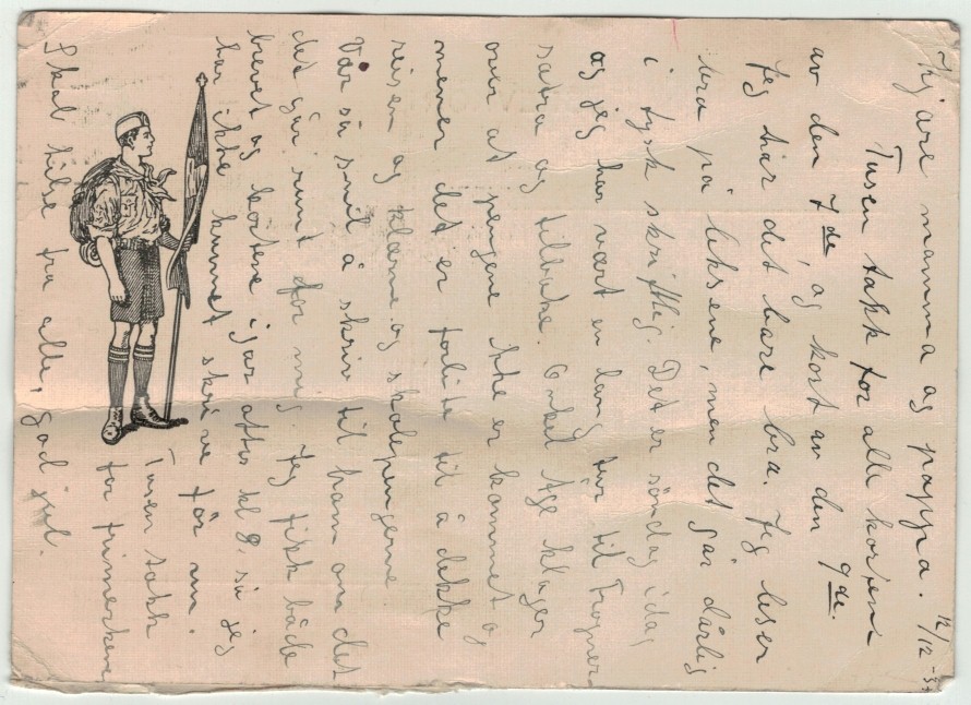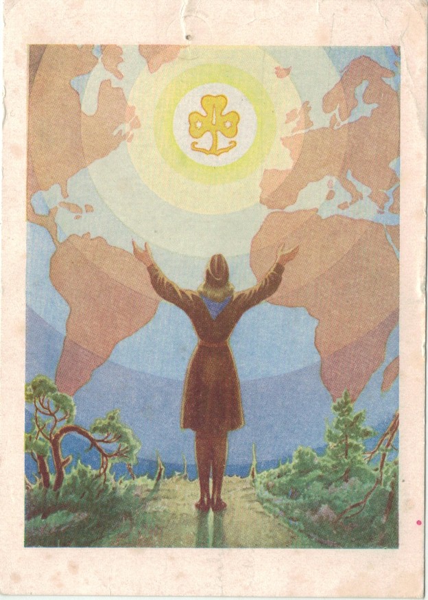 201. NSPF(?) ca. 1938 - hvem har tegnet speideren? Se også nr 102, kan være samme kunstner.