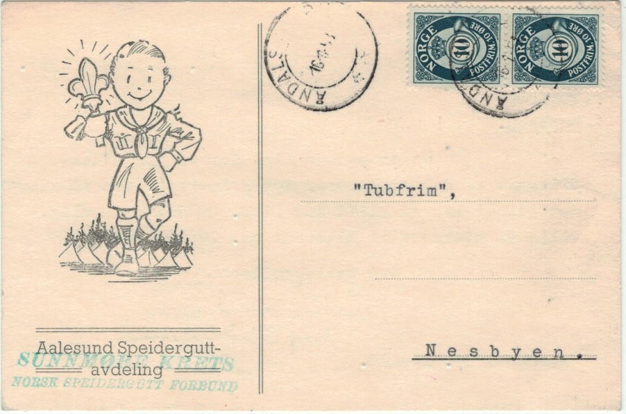 119. NSF 1965, Karmøy-speidere. QSL-kort (ikke postkort). Hvem er tegneren?