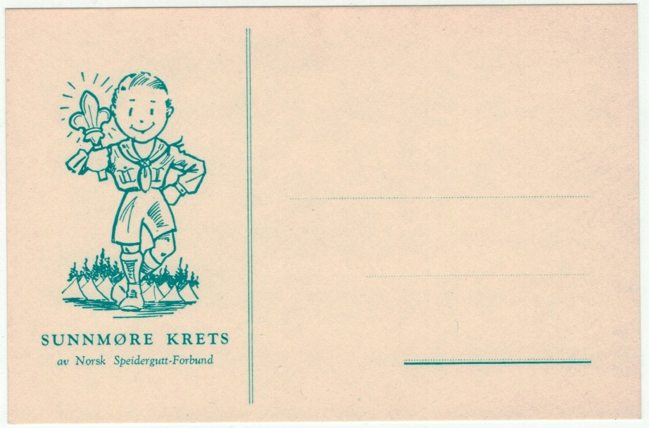 107. NSF 1953, Aaalesund Speidergutt-avdeling / Sunnmøre krets. Tegningen stod i Speideren nr. 5 1934 og i mange senere blad. Tegnet av Thor Wiborg?