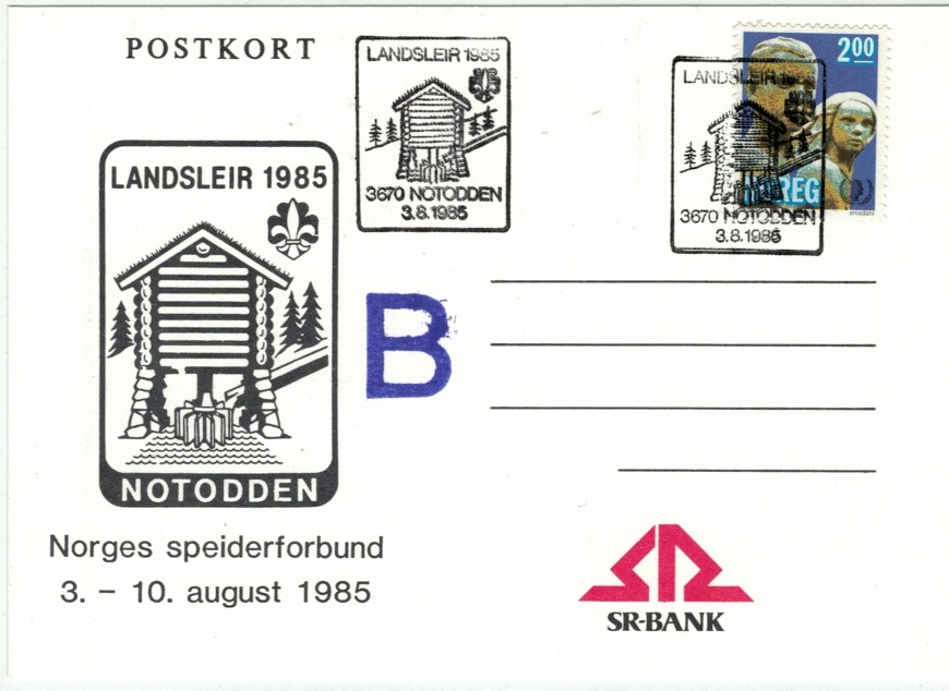 324. NSF 1985. Kortet er laget av/for Madla speidergruppe. Leirlogoen er lånt fra landsleiren/forbundskontoret, hvem har laget den?