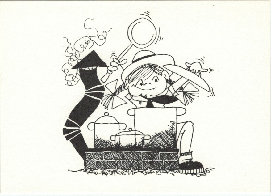 515. KFUK ca. 1985, blank bakside. Hvem er tegneren?