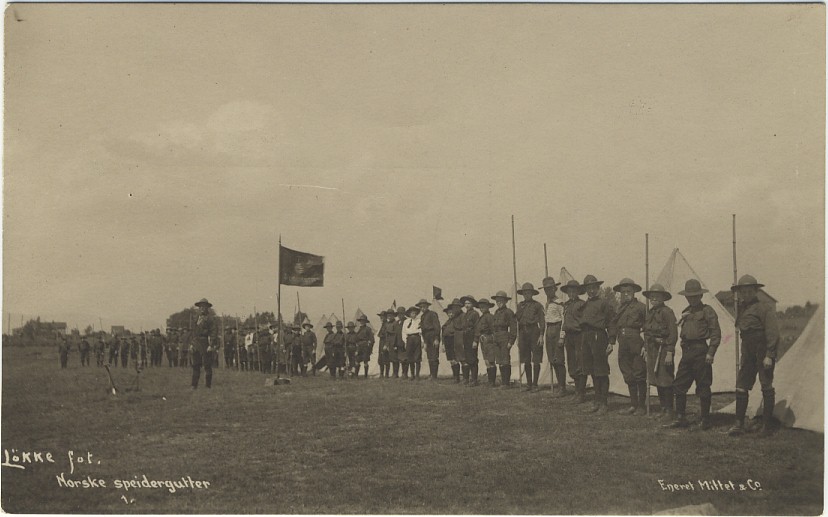 56. Hvem, hvor og når? Speiderne har hatter, så det er senest 1922 (da kom båtluene).