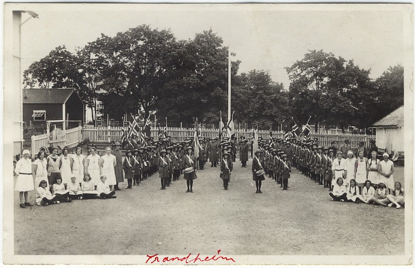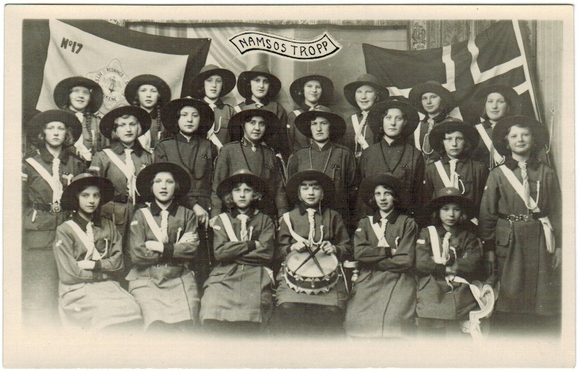 15. Kan dette være fra korpsleiren til Frelsesarmeens Livredningsspeiderjenter i 1930 på Strindheim skole i Trondheim?