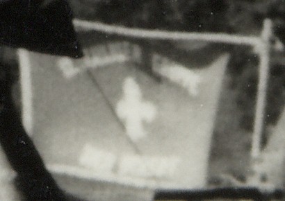 | 36. John Hansen opplyser at dette er danske FDF-ere (Frivilligt Drengeforbund) - ikke speidere. Det er et troppsbanner i bakgrunnen som viser en speiderlilje, så fotoet er nok tatt på en speiderleir - men ikke i Danmark! Er det en norsk leir? Se forstørrelse av troppsbanneret til høyre. |