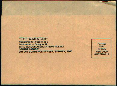 |  C. 1970's, Postage Paid imprint on wrapper. Girl Guides Association (N.S.W.), Sydney, N.S.W.  Late 1970's - early 1980's, Postage Paid imprint on wrapper. Girl Guides Association (N.S.W.), Sydney, N.S.W. |