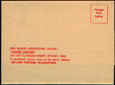 ![]() Late 1980's, Postage Paid imprint on envelope. The Girl Guides Association of Queensland, Brisbane, Queensland. |