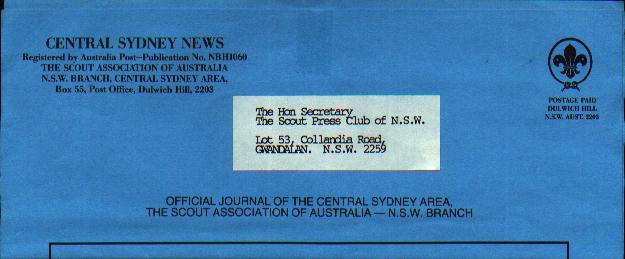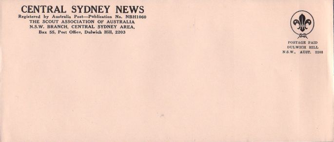 ![]() Unknown year, c. 1985?, Postage Paid imprint on newsletter. The Scout Association of Australia, Haberfield, N.S.W. |