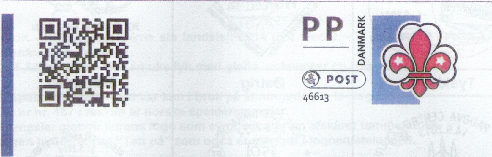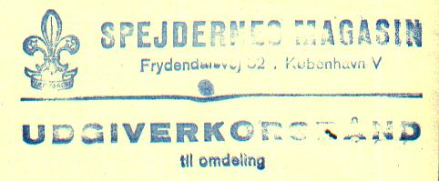 Unknown year, c. 1970?, printed self-adhesive label "Udgiverkorsbånd / spejder tips"
